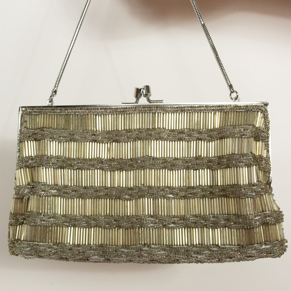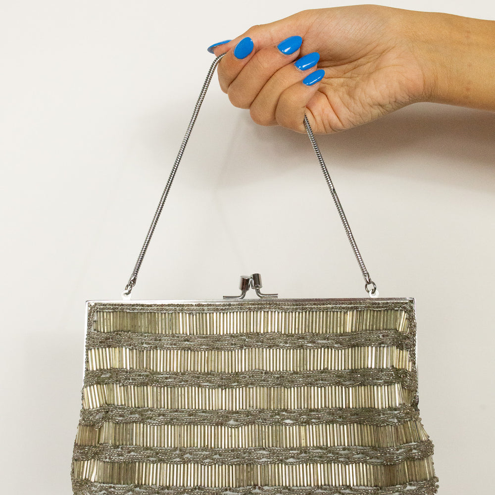 Silver Bugle Bead Purse