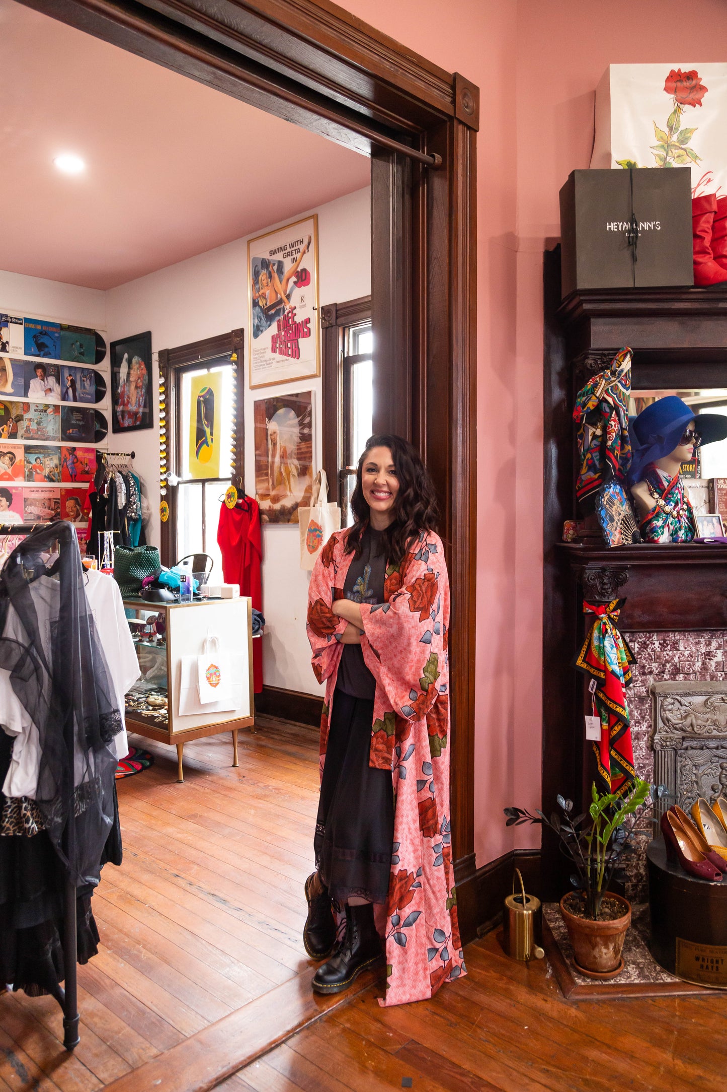 Meet Chanel, owner and curator of Frenchy's House of Vintage! A former oil & gas accountant turned vintage treasure hunter, she traded spreadsheets for sequins, workwear, and the thrill of giving forgotten pieces a second life. Her curation? A little bit of everything - 60's & 70's classics, band tees, animal print, delicate lingerie, and the unexpected mashups that make vintage magic. But her favorite part? Helping customers find something that sparks joy and makes them feel incredible. Her advice? Ignore sizes, shop both sections, and stop saying you "can't pull that off" because you absolutely can.